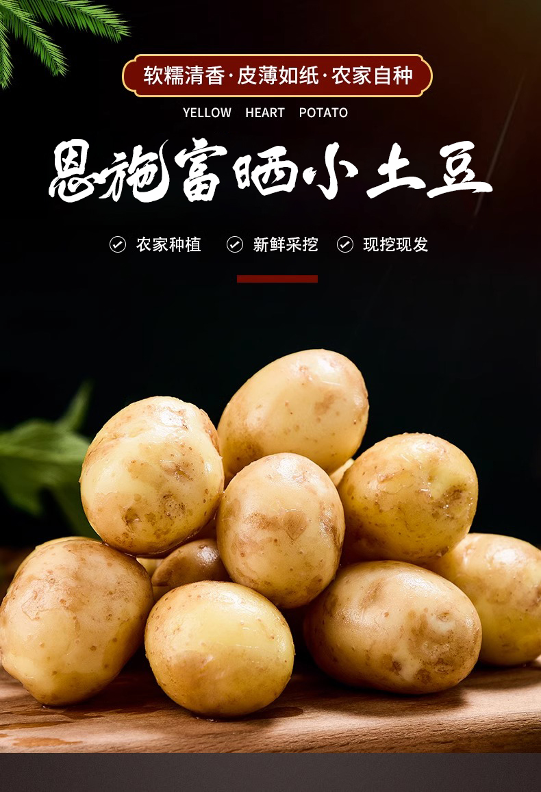 【国家地理标志】湖北恩施富硒小土豆(2.5kg±100g/箱,约35个)粉粉糯糯的,蒸,煮,空气炸锅炸都非常好吃