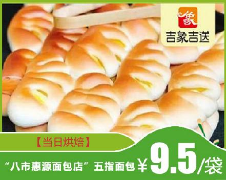 周五送货【当日烘焙】“八市惠源面包店”五指面包(3个/袋)