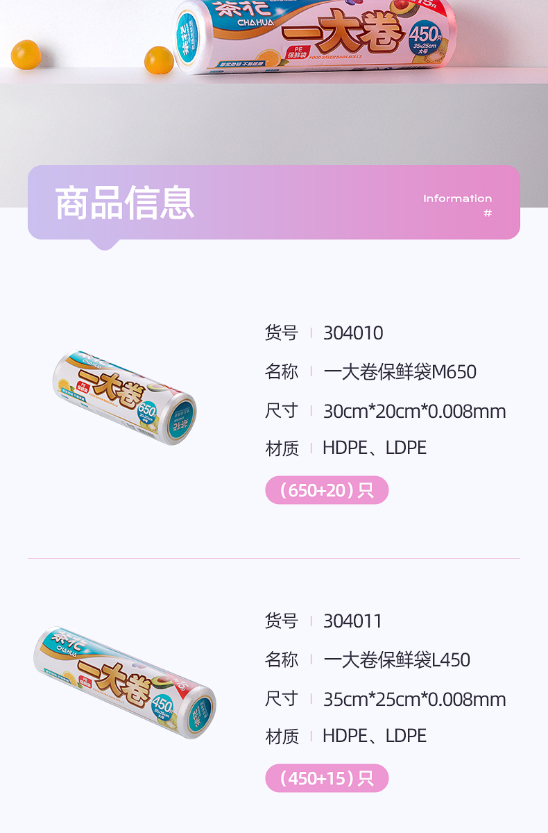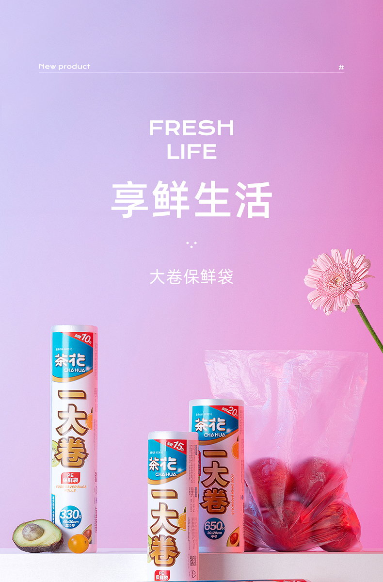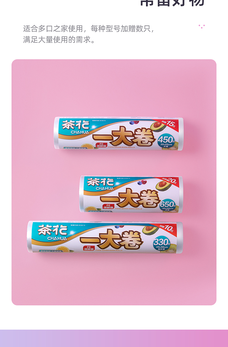 【蕞便宜】“茶花”一大卷保鲜袋L450