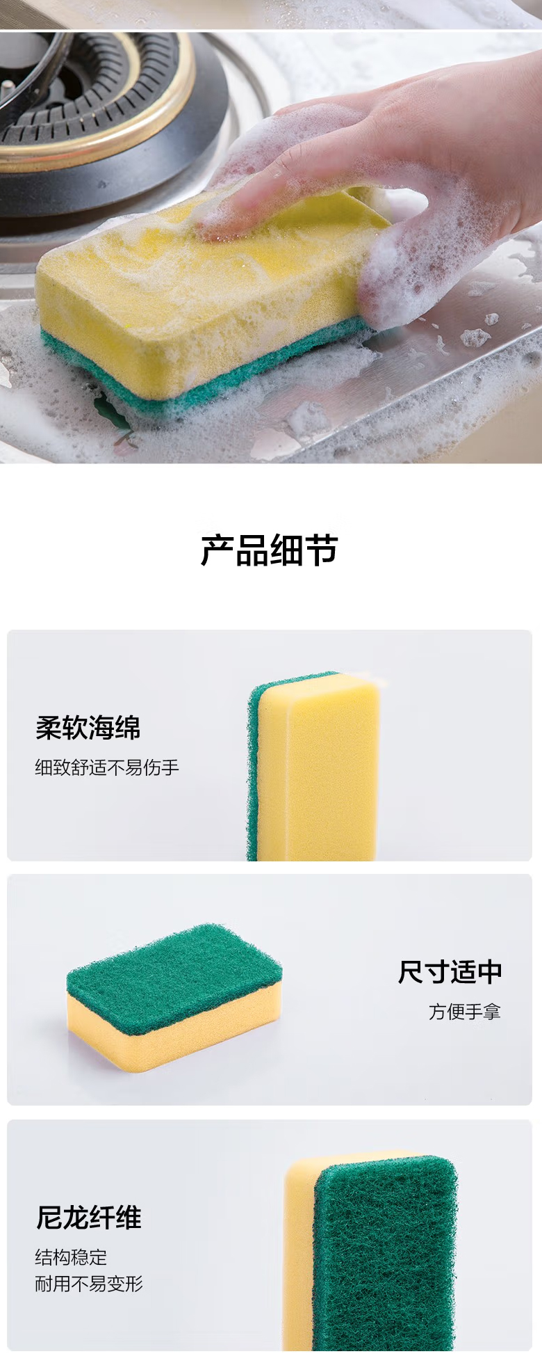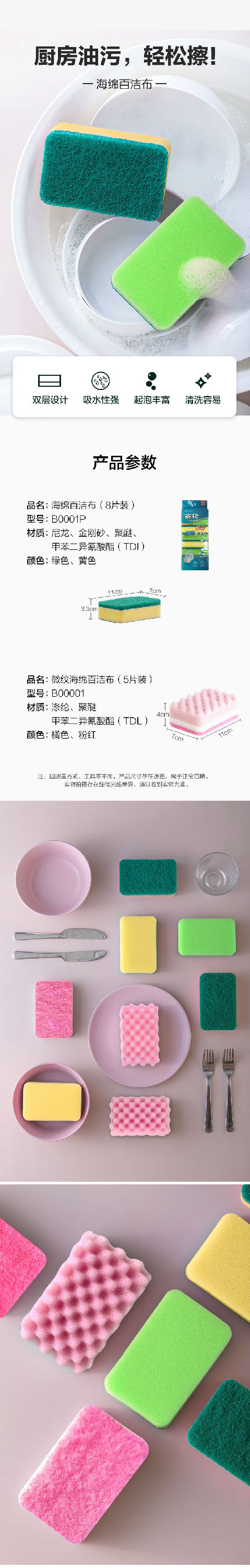 【蕞便宜】“茶花”波纹海绵百洁布(2+1片装)