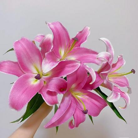 【某朴价6折】普拉芬多百合3头/支,花香浓郁,初时玫红色,后渐变成浅粉(加购鲜花保鲜剂,可延长花期)