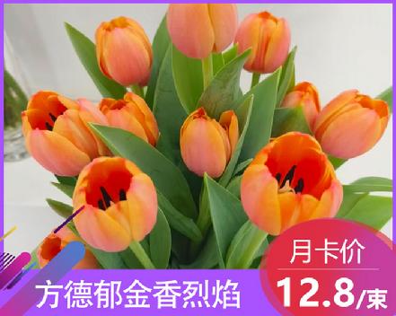 【某朴价6折】方德郁金香烈焰5支,明媚的橙红色,十分耀眼(另购鲜花保鲜剂,可延长1倍花期)