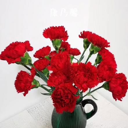 【蕞便宜】洪福康乃馨9支,喜气洋洋的鲜红色(另购鲜花保鲜剂,可延长花期)