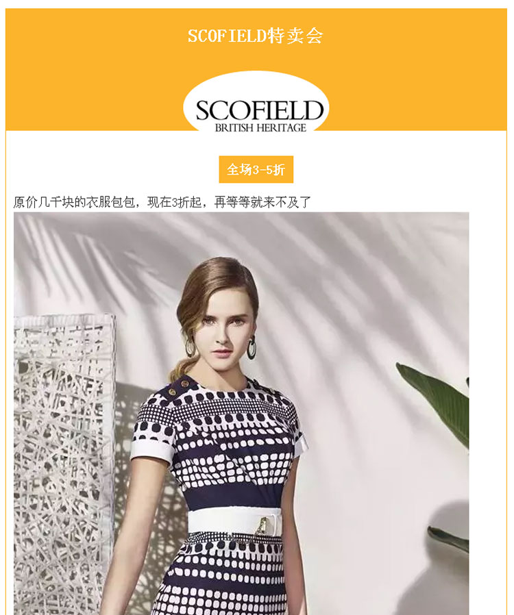 SCOFIELD特卖会,全场3-5折,原价几千块的衣服包包,现在3折起,再等等就来不及了!