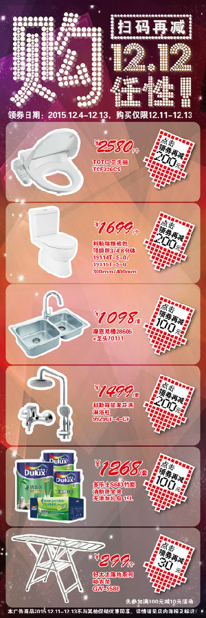 6大单品扫码领券,双12直降达200元!签约装修送松下三开门冰箱~
