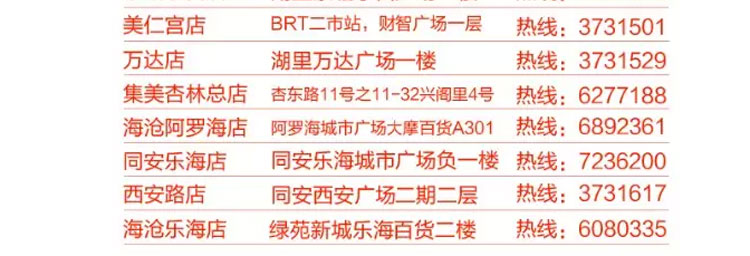 地址:厦门市思明区仙岳路678号龙门天下 电话:0592-5585675 营业时间:9:00-22:00