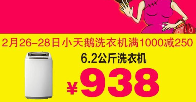 2月26日-28日小天鹅洗衣机满1000减250
