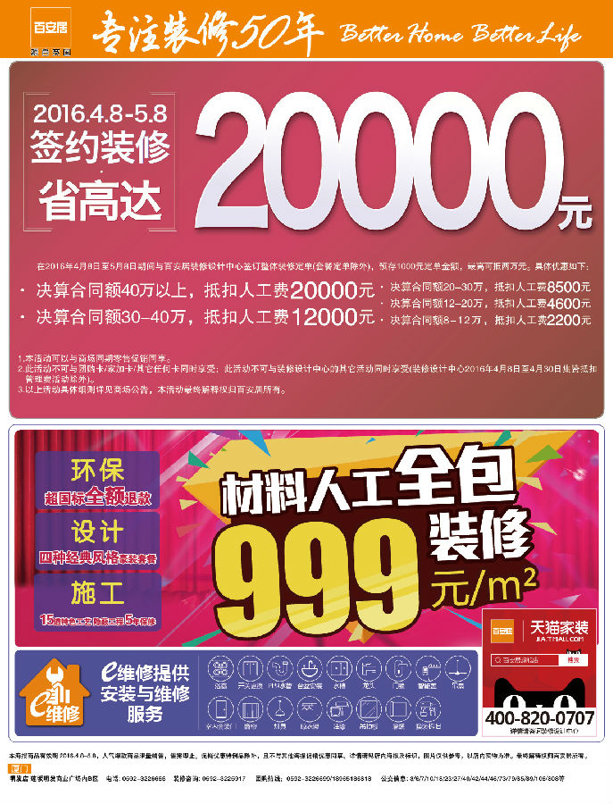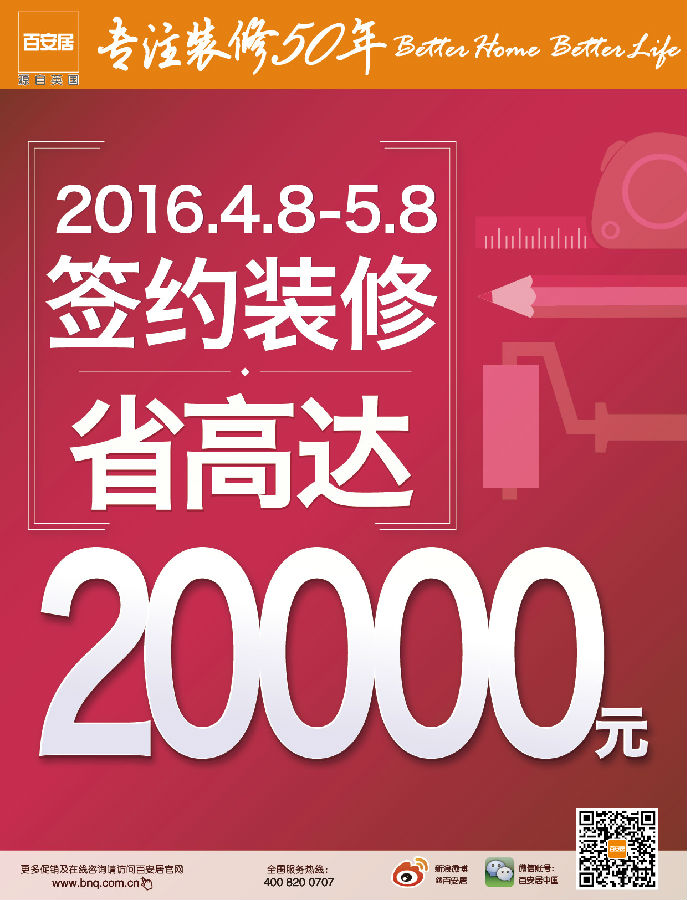 4月8日至5月8日签约百安居装修设计中心省高达20000元!还有爆款商品热销中。。。