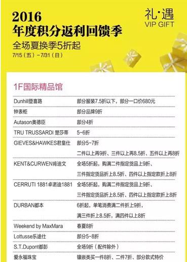 年度会员积分返利回馈季︱品牌折扣信息